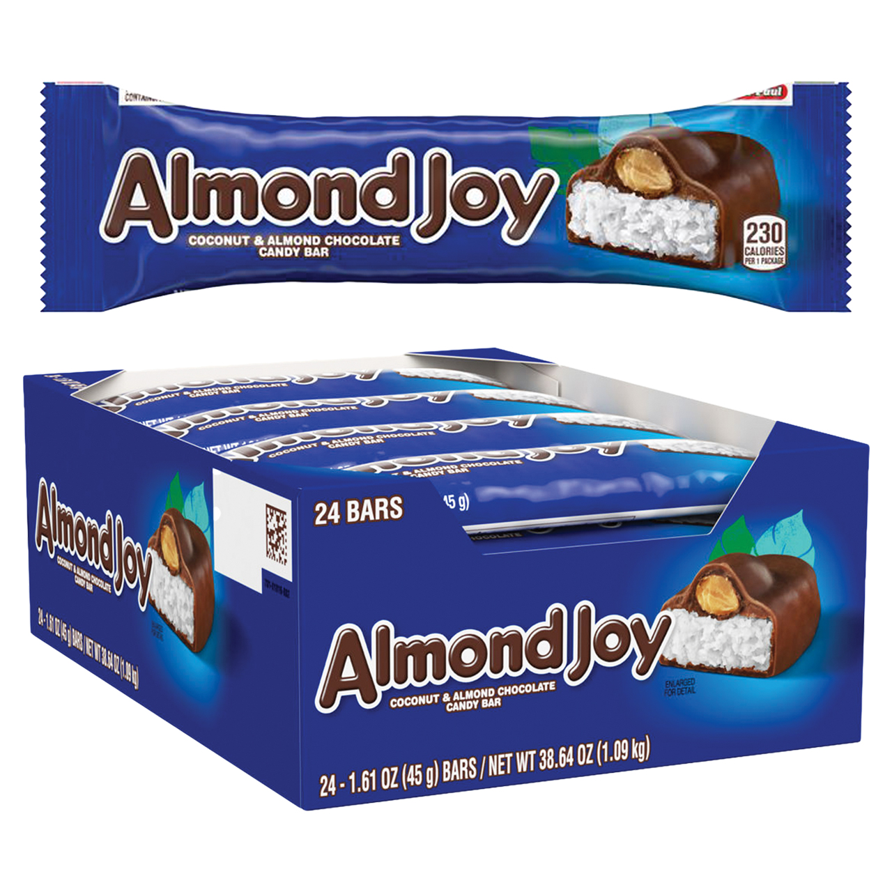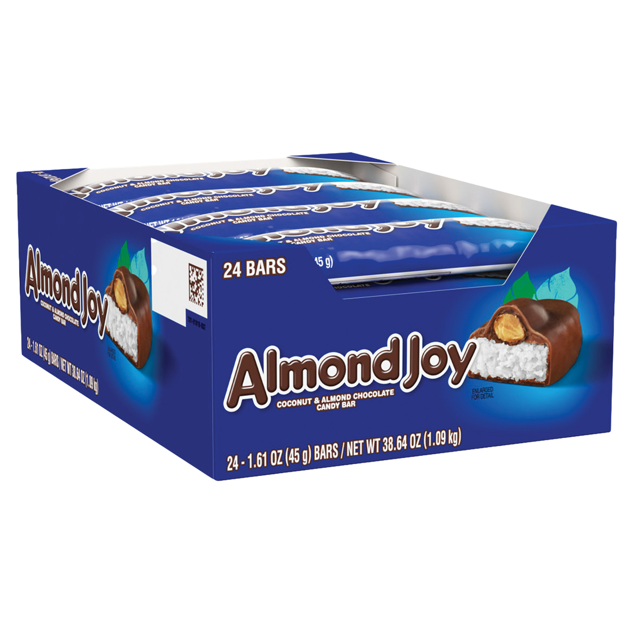An irresistible combination of almonds and sweetened coconut dipped in chocolate, Almond Joy candy bars are a delicious way to satisfy your sweet tooth! Sold in a display box. Each display box contains 24 bars. 1.61oz bars.
