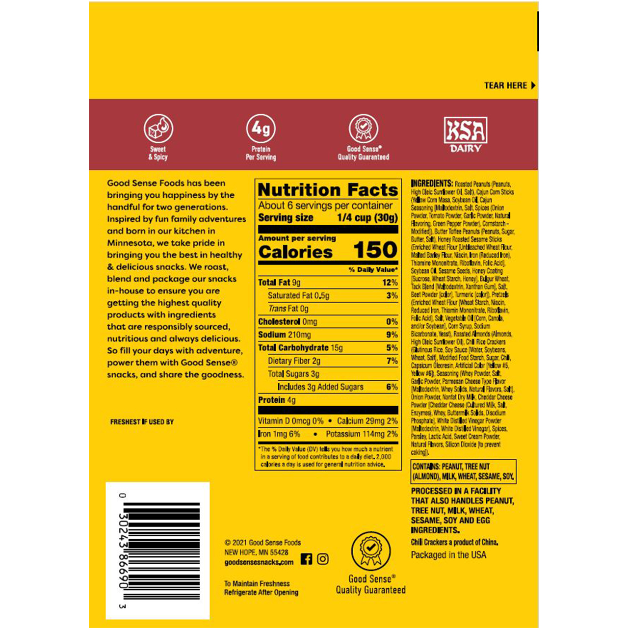 - Processed in a facility that also handles peanut, tree nut, milk, wheat, sesame, soy, and egg ingredients