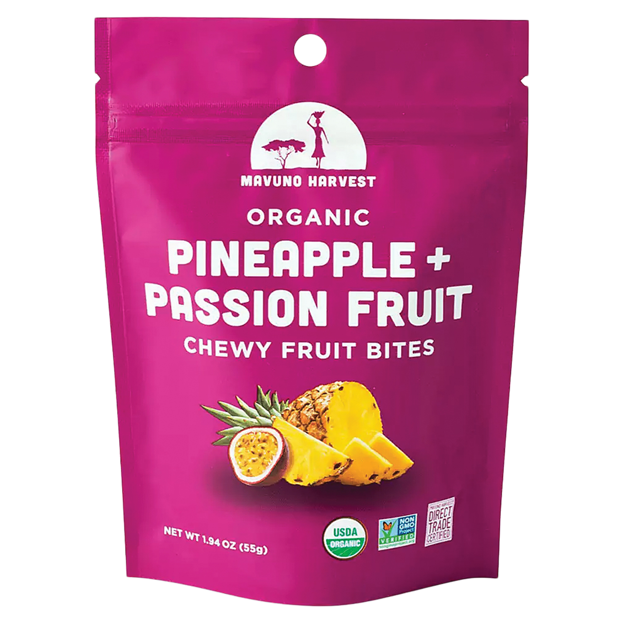 Mavuno Harvest Organic Pineapple & Passion Fruit Chewy Fruit Bites offer a vibrant tropical fruit snack with bold pineapple sweetness and tangy passion fruit flavor. These soft, chewy fruit bites are made with simple ingredients and provide a naturally sweet treat that fits well in bulk candy selections, better-for-you snack assortments, and fruit snack displays. With a clean ingredient profile and bright tropical taste, they make an appealing option for customers shopping for organic fruit snacks and chewy candy alternatives.