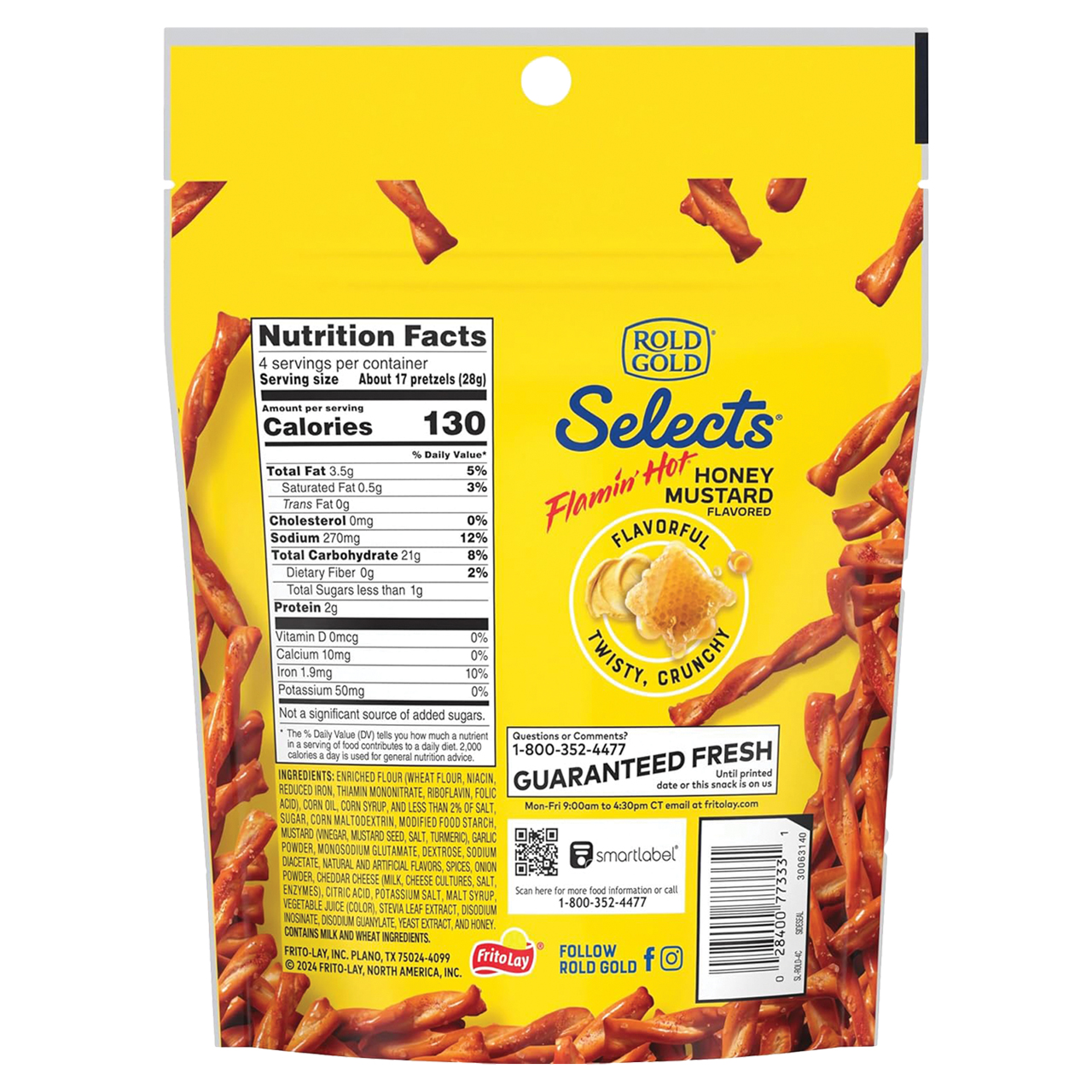 Rold Gold Selects Pretzel Twists Flamin’ Hot Honey Mustard combine sweet honey mustard flavor with a spicy kick in a crunchy pretzel snack. These bold pretzel twists are a great fit for savory snack assortments, party snacks, and grab-and-go displays where sweet heat flavors stand out. Their crisp texture and layered seasoning make them appealing to customers looking for spicy pretzel snacks.