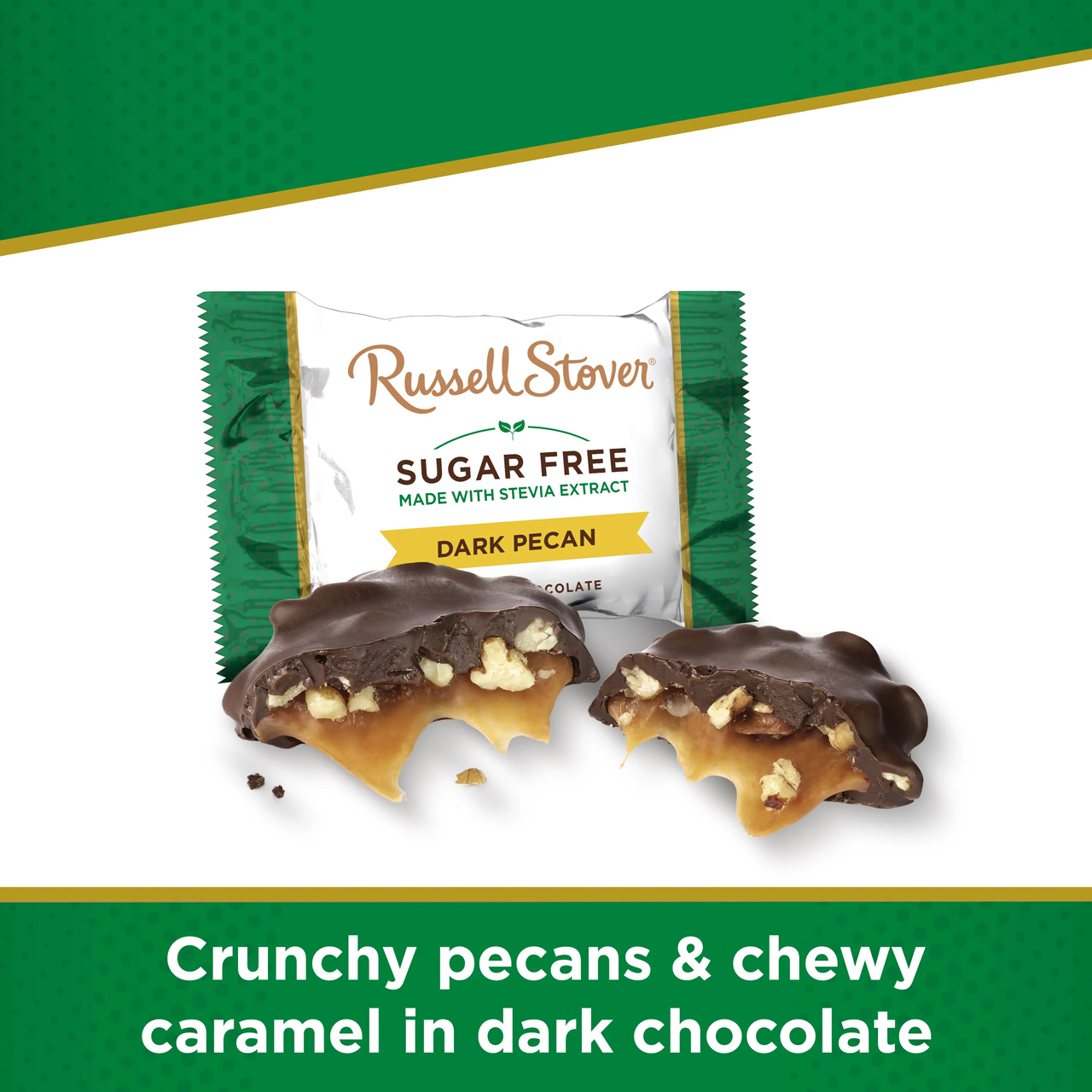 Enjoy a delicious treat without the sugar with Russell Stover Sugar-Free Dark Chocolate Pecan Delight. This 2.4-ounce bag includes four individually wrapped pieces, perfect for on-the-go snacking or sharing. Each bite features crunchy pecans and chewy caramel coated in rich dark chocolate for a satisfying mix of textures and flavors. Made with Stevia extract, it offers a sweet indulgence without the added sugar. The convenient peggable packaging makes it easy to display and enjoy anytime.